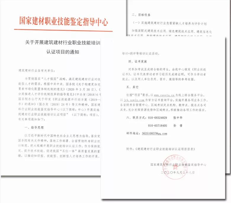 建筑建材行业职业技能培训认证项目是国家建筑材料行业职业技能鉴定指导中心正式立项项目。