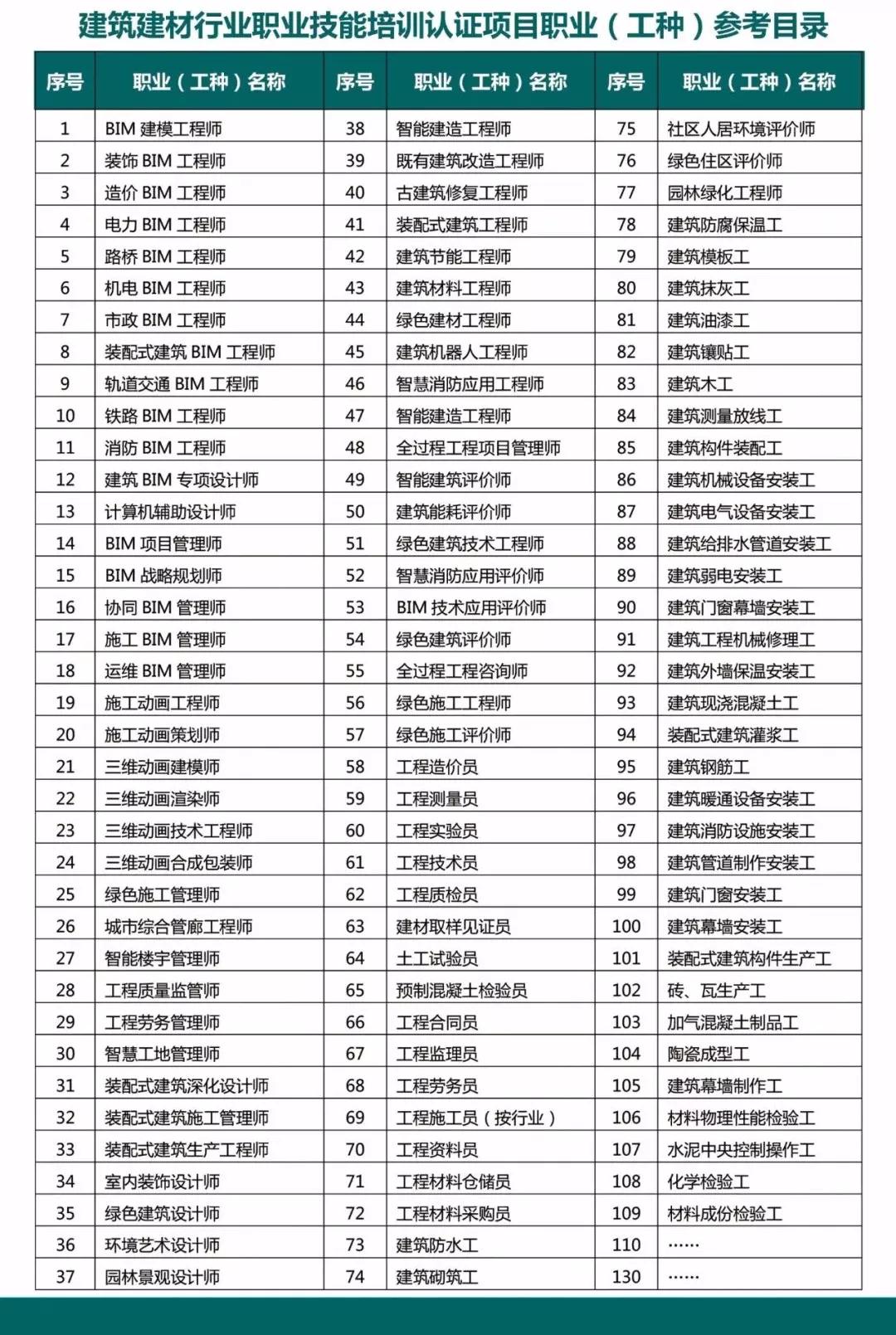 具体建筑建材行业职业技能培训认证项目职业(工种)参考如下: