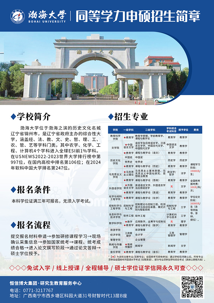 同等学力申硕 | 渤海大学