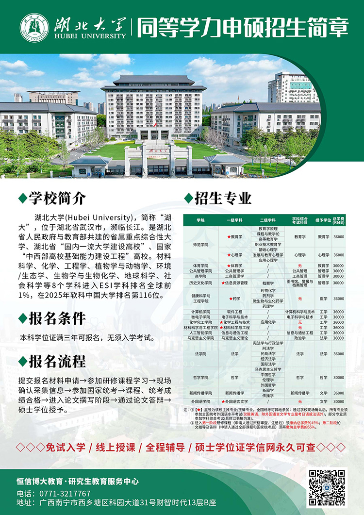 同等学力申硕 | 湖北大学