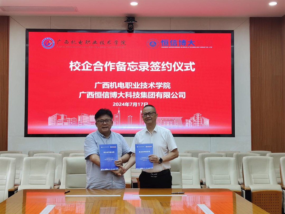 双方就如何落实广西机电职业技术学院和新加坡合作建设的工匠学院进行了深入探讨,同时还就教师能力提升方面也进行了初步沟通。在友好隆重的气氛中,双方代表黄映恒董事长和刘捷副校长在校企合作备忘录上签字,达成正式的战略合作。双方领导表示,希望通过此次深度合作,在恒信博大集团的带动下,推动三方合作建设的项目落地,实现多方共赢,共同探索出一条校企合作的新路子。