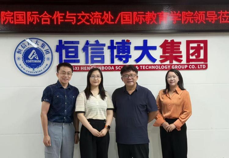 2025年7月23日,桂林学院国际交流合作处、国际教育学院汪婧老师到访恒信博大科技集团,双方在公司总部会议室举行座谈会,董事长黄映恒一行3人参加座谈交流。