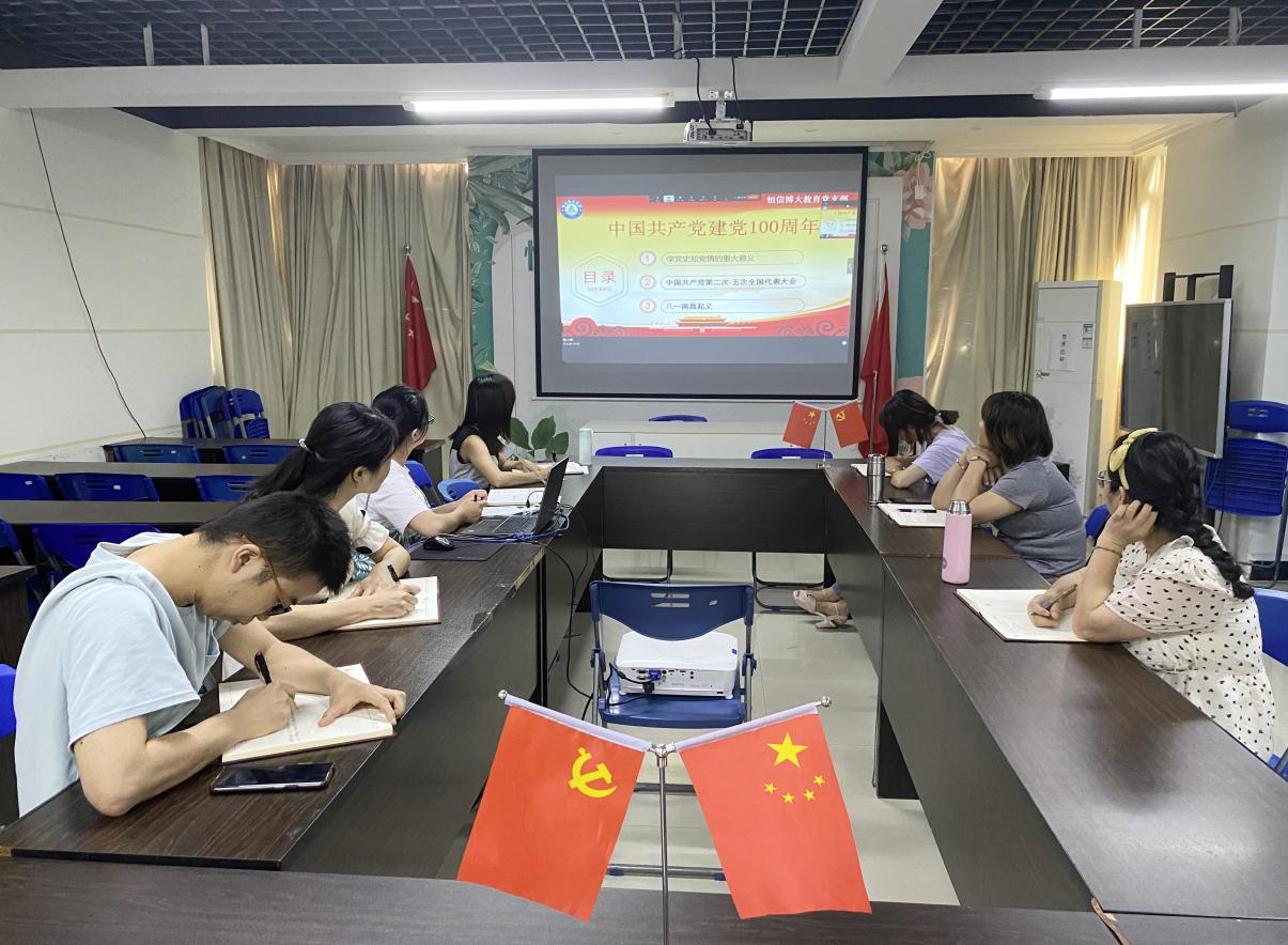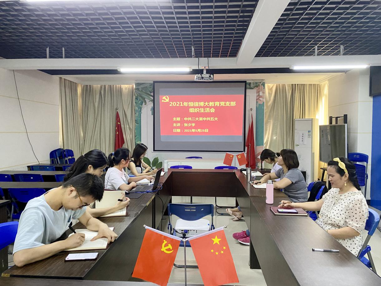 2021年5月25日下午,广西恒信博大教育科技集团有限公司党支部开展党史学习教育“中共二大至中共五大回顾中国大革命时期”主题组织生活会,参加本次会议的同志有正式党员、预备党员、入党积极分子,外区域党员同志通过钉钉视频会议参加本次会议,会议由党员张少宇同志主讲。