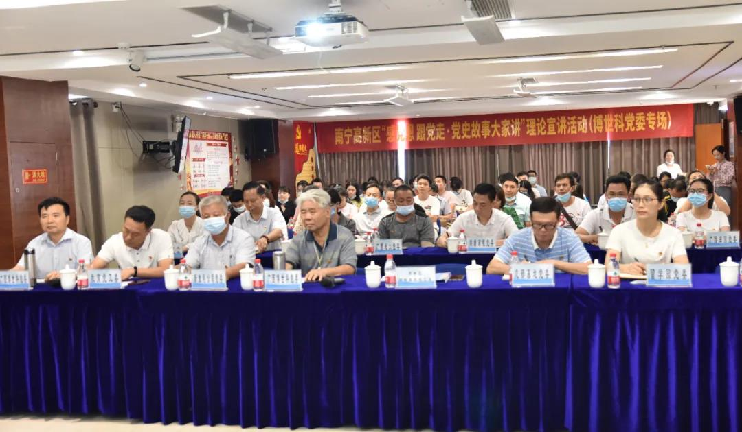 中国共产党即将迎来百年华诞。为响应党中央关于在全党开展党史学习教育的号召,2021年5月28日,南宁高新区两新组织党工委主办、广西博世科环保科技有限公司承办的“感党恩 跟党走·党史故事大家讲”党史专题集中宣讲活动在博世科公司举行,高新区各特色产业园区党委,各非公有制经济组织和社会组织党组织书记、党务工作者等90余人参加活动。恒信博大教育集团党支部书记秦黎桃同志参加本次学习活动。