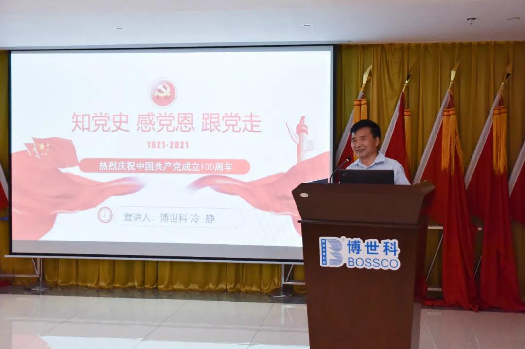 博世科党委书记冷静作党史专题宣讲,围绕“学习党史悟初心,坚定理想信念;吃水不忘挖井人,幸福不忘感党恩;践行初心使命,一心一意跟党走”三个主题,讲述中国共产党诞生的国内国际背景、百年党史的四个历史阶段、建党的初心和党肩负的历史使命以及党领导人民取得的重大成就,全面总结党的历史经验,解读中国共产党的百年辉煌历程,诠释中国共产党为什么“能”、马克思主义为什么“行”、中国特色社会主义为什么“好”。并交流分享自己的学习体会。