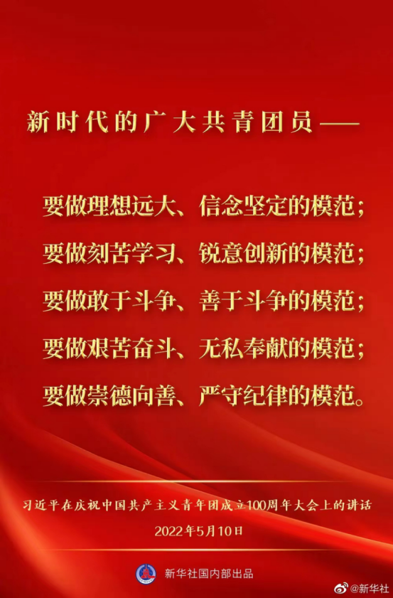 2022年5月10日上午10:00,庆祝中国共青团成立100周年大会在人民大会堂隆重举行。中共中央总书记、国家主席、中央军委主席习近平发表重要讲话。共青团广西恒信博大科技集团有限公司支部委员会组织在职团员通过网络平台直播、电视、广播等多种方式收看、收听了建团100周年庆祝大会直播盛况,认真聆听习近平总书记的重要讲话。