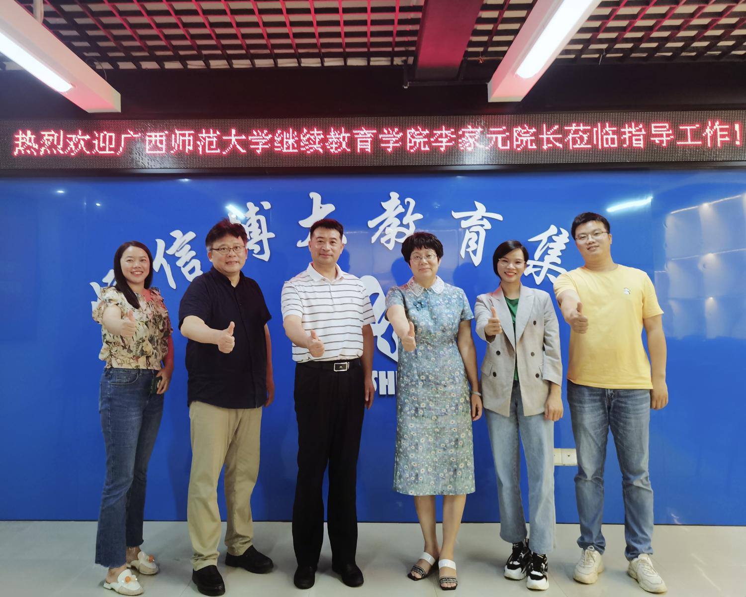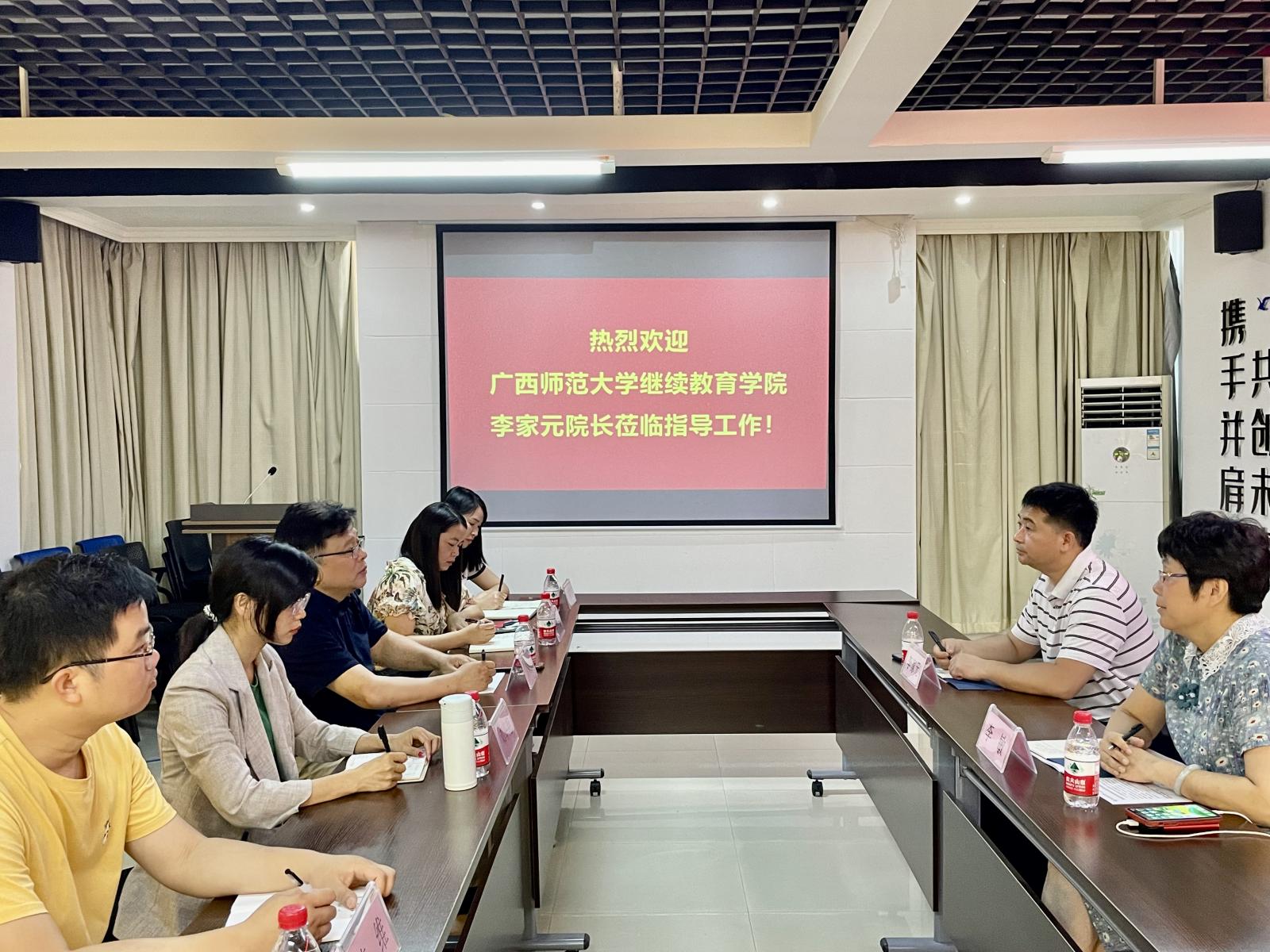 2022年5月26日下午,广西师范大学继续教育学院李家元院长及李敏副院长一行三人莅临我函授站进行交流指导工作,负责人黄映恒博士全程接待陪同,并对李家元院长一行的到来表示热烈欢迎。