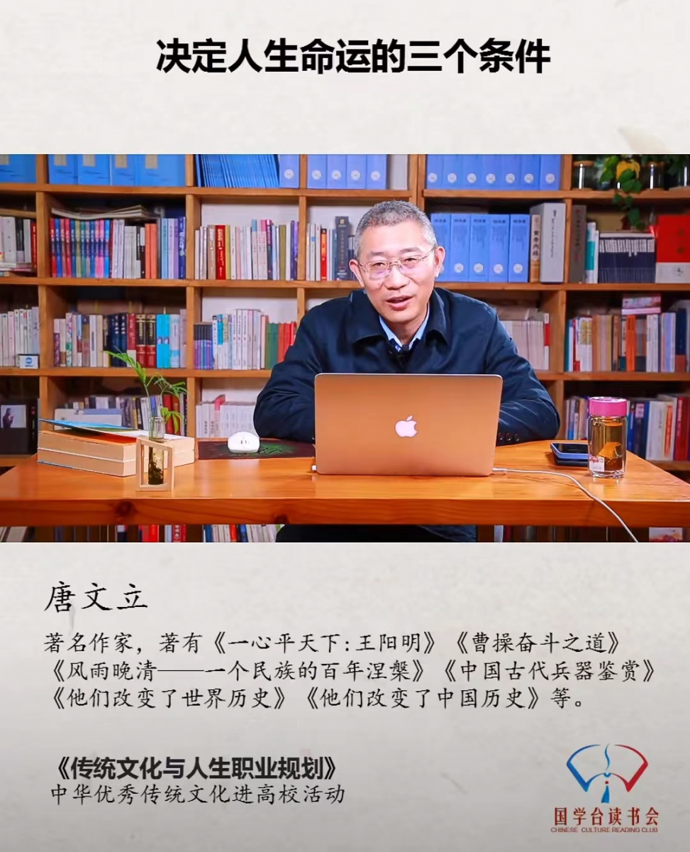 著名作家、阳明心学践行学者唐文立在第二讲《传统文化与大学生的职业规划》中,开篇就提出了决定人生命运的三个条件。他强调,一个人在年轻时应该追寻自己的理想和志向,兴趣固然关键,但志向更为重要。他引用王阳明的经典励志语录“从吾游者众矣,虽开说之多,未有出于立志者。”,以及《启问道通书》中“大抵吾人为学紧要大头脑,只是立志。夫立志亦不易矣。”的警示,鼓励大家“立大志,方行远”。