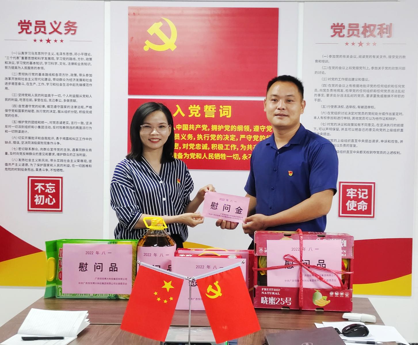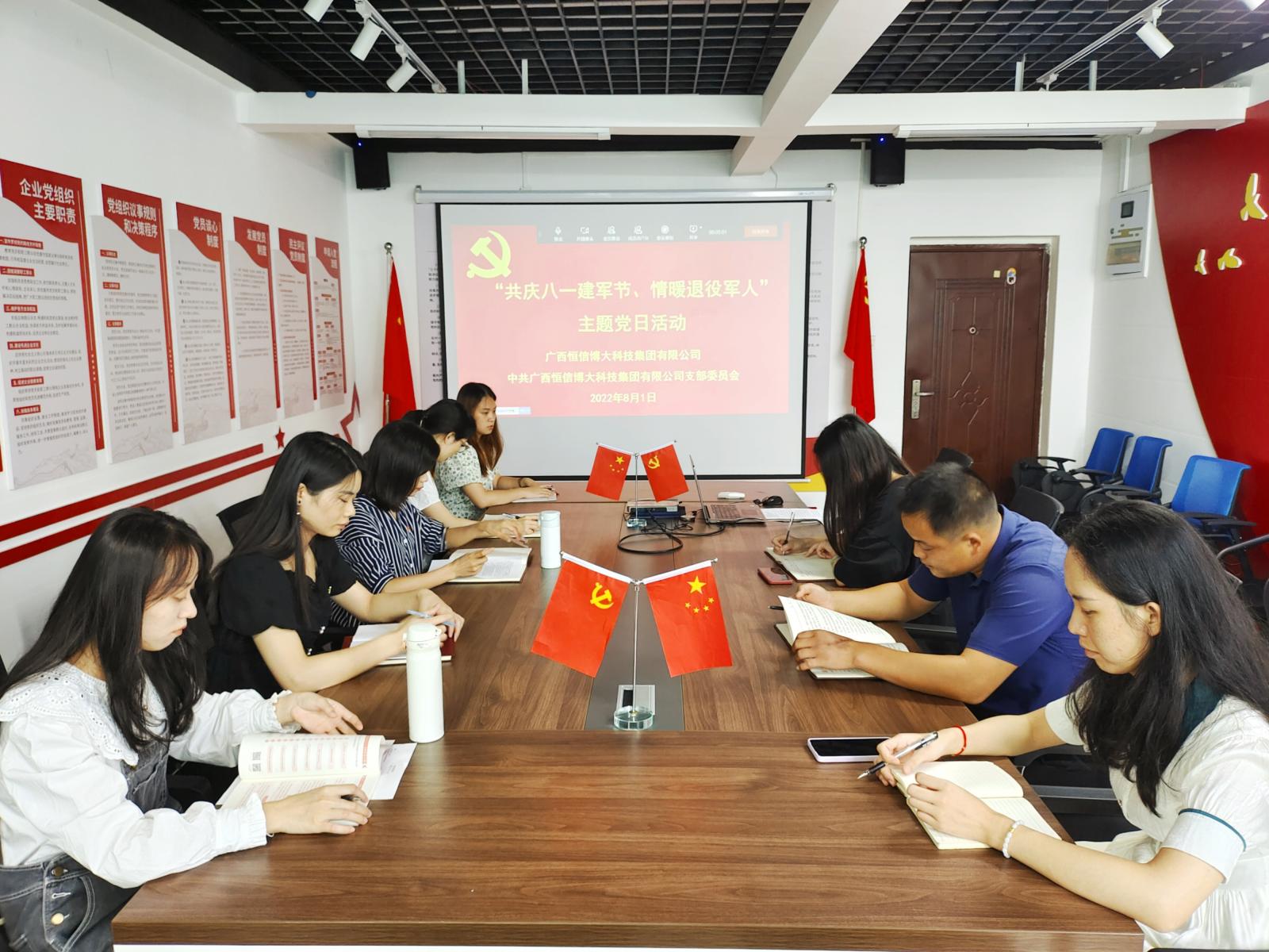2022年8月1日是中国人民解放军建军95周年,为扎实做好节日期间的拥军优属、拥政爱民工作,弘扬我党我军的优良传统,激发军民的民族精神和时代精神,进一步增强双拥意识和国防观念,丰富双拥工作的形式和内容,恒信博大党支部结合实际情况,于今天下午在党员活动室开展“共庆八一建军节、情暖退役军人”主题党日活动。支部全员参与活动、活动由林燕萍同志主持。
