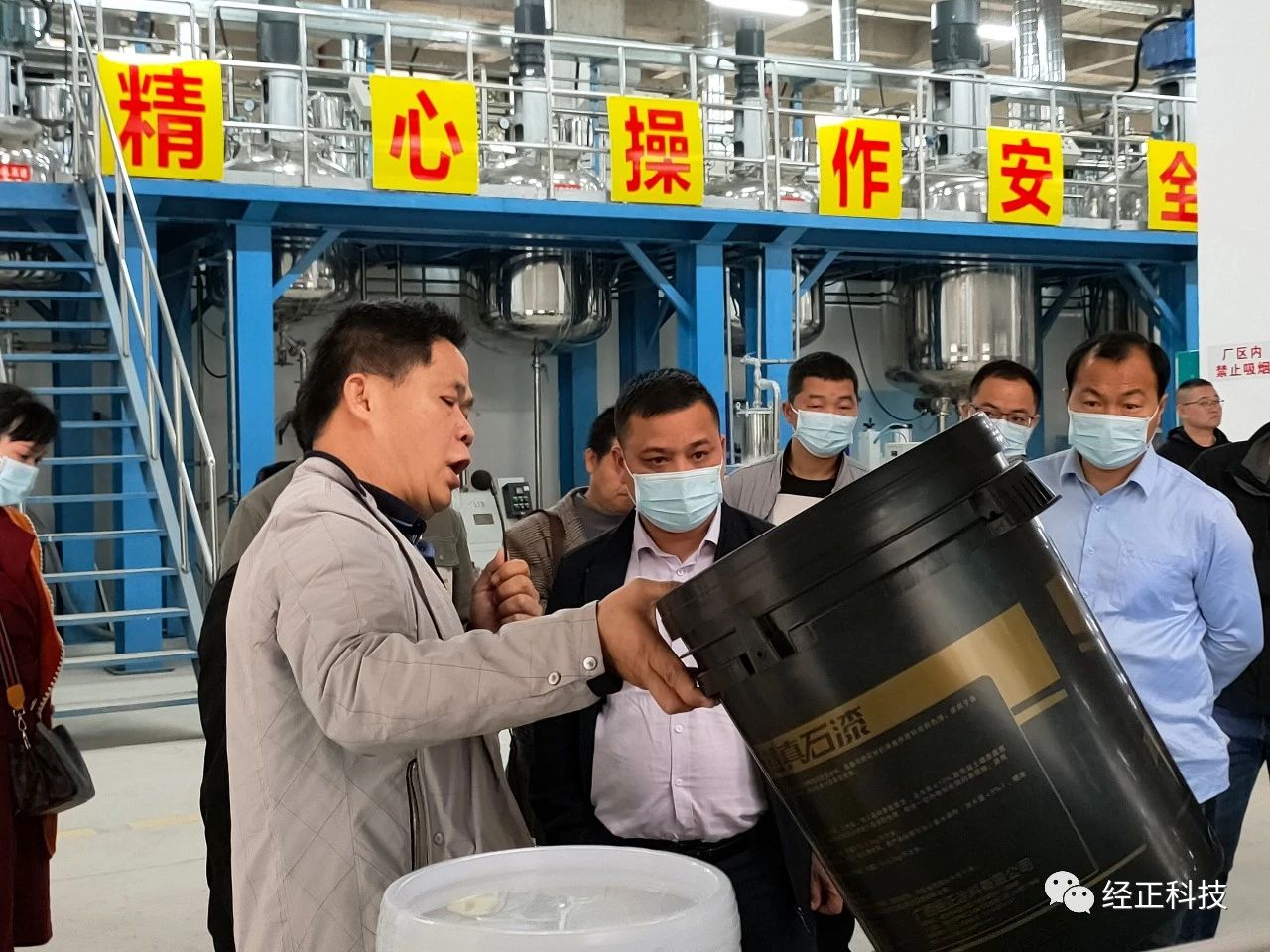 3月16日,开展的是涂料生产过程、涂料理论知识、涂料施工工艺讲解及实操等内容的培训。上午,首先通过多彩中涂乳胶漆的实际生产,在生产车间对产品的生产工艺进行详细的讲解,让同事们在生产实操中亲眼见证了涂料原材料的组成及生产的制作过程。