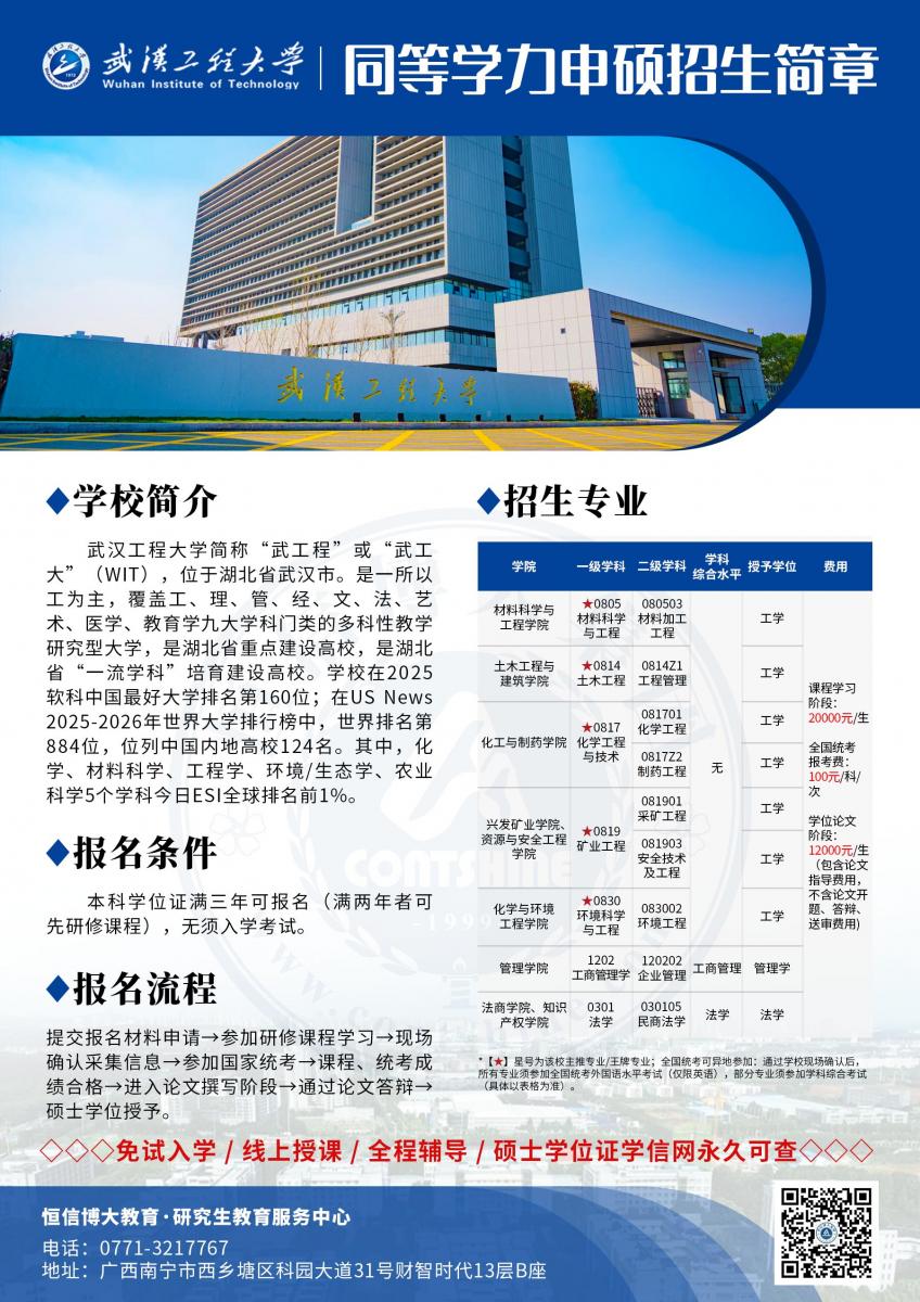 同等学力申硕 | 武汉工程大学