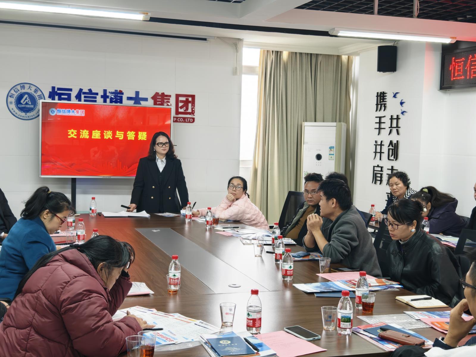 项目介绍结束后,开始现场交流座谈与答疑环节,与会嘉宾踊跃发言,就项目详情、市场方向、招生支持、运营管理等具体问题进行了深入探讨。集团相关负责人一一作出细致解答,现场互动频繁,气氛融洽,进一步增进了彼此的了解与信任。