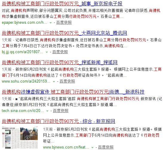 前几日,各知名网站纷纷报道了“尚德机构涉嫌虚假宣传 被工商部门行政处罚90万元”的新闻,新闻中不仅曝光了尚德机构存在虚假宣传、学员退费难、投诉难等问题,也公布了工商局对尚德机构的行政处罚。希望尚德机构...