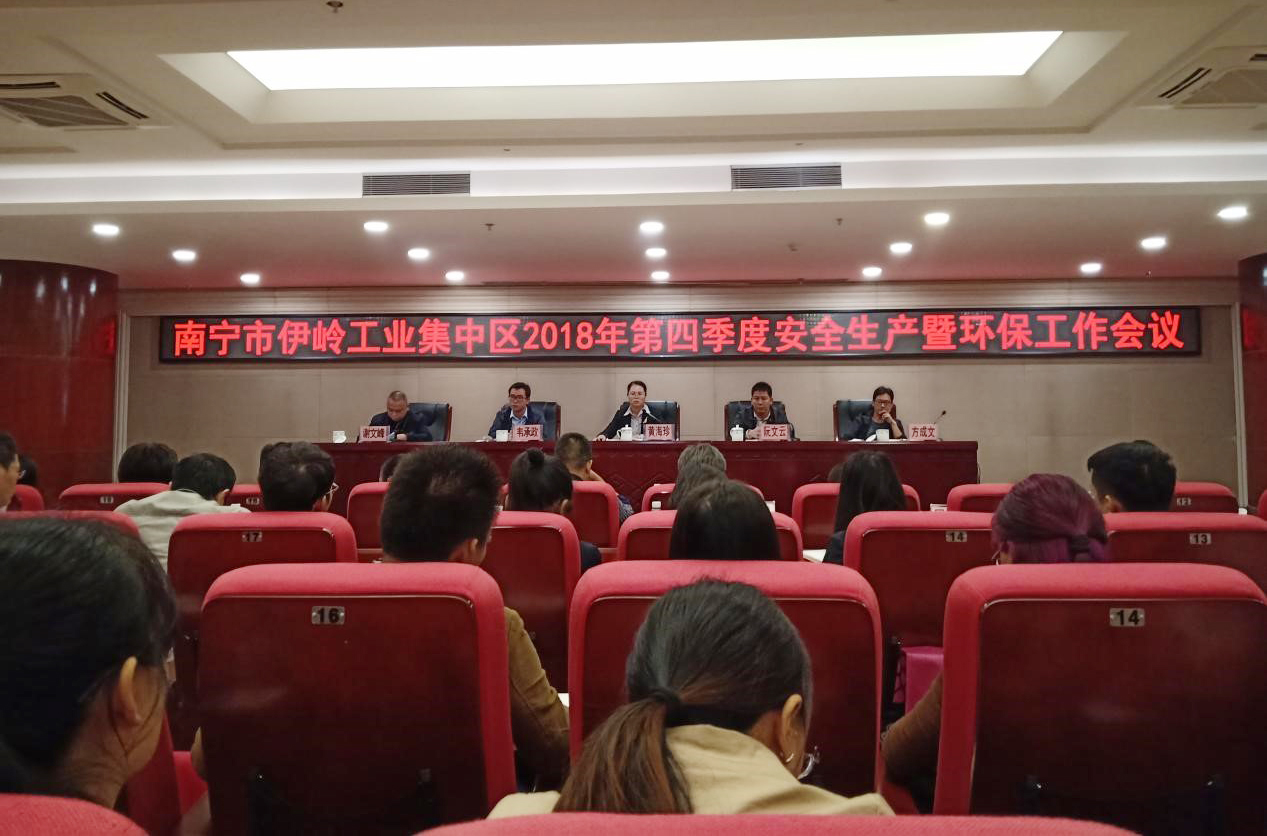 2018年10月16日上午,由南宁市伊岭工业集中区管委会组织的“2018年第四季度安全生产暨环保工作会议”在武鸣区富鸣城投1号楼5楼召开,伊岭工业区管委会副主任黄海珍及环保、安监、招商等部门领导出席会...