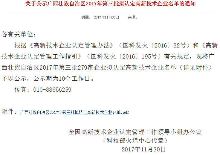 11月30日,高新技术企业认定管理工作网通公告,公示了广西壮族自治区2017年第三批拟认定高新技术企业名单,经正科技公司在公告名单中,意味着公司通过高新技术企业认定,正式成为国家高新技术企业。为提高公...
