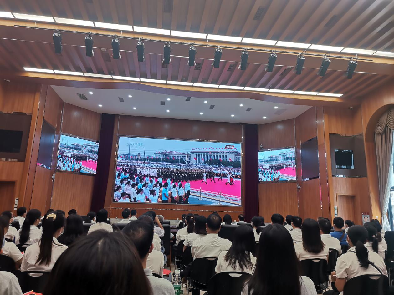 中国共产党百年风雨兼程,百年岁月峥嵘,百年自强不息,百年奋斗前行。观看结束后,全体党员们高声呐喊“伟大的中华人民共和国万岁,伟大的中国共产党万岁”,这声声呐喊使我们更加坚定信念、更加坚定贯彻为人民服务的宗旨,以先进为榜样,担当作为,奋力拼搏,争创新辉煌。